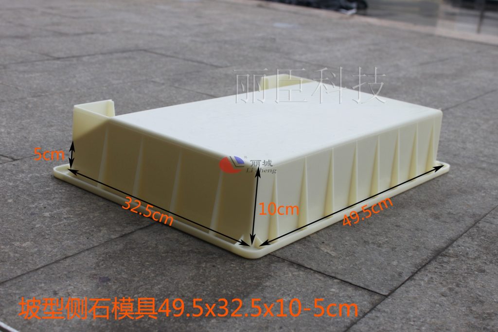 坡型側石塑料模具的生產大多采用PP聚丙烯材質來作為主要生產原料,這款坡型側石模具在生產上采用韌性較強的ABS材質來作為主要生產原料。