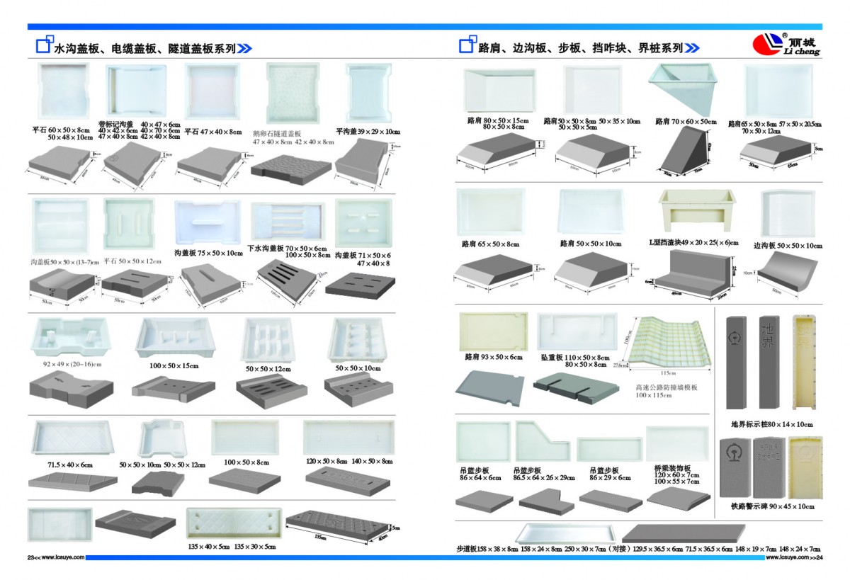 05-08頁:路基防護柵欄模具系列 ? ? ? ? ? ? ? ? ? ? ? ? ? ? ? ? ? ? ? ?09-14頁:高鐵水泥護欄模具系列