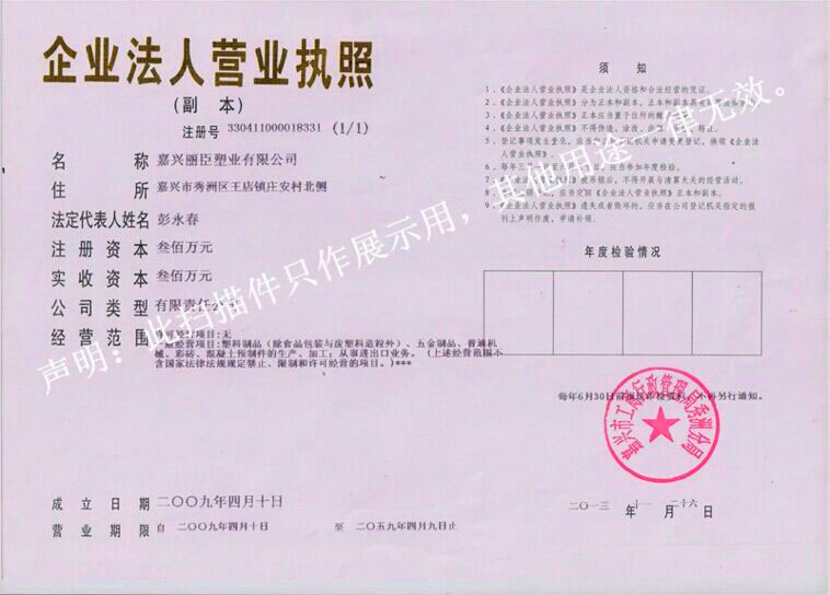 嘉興麗臣塑業(yè)有限公司榮譽(yù)墻